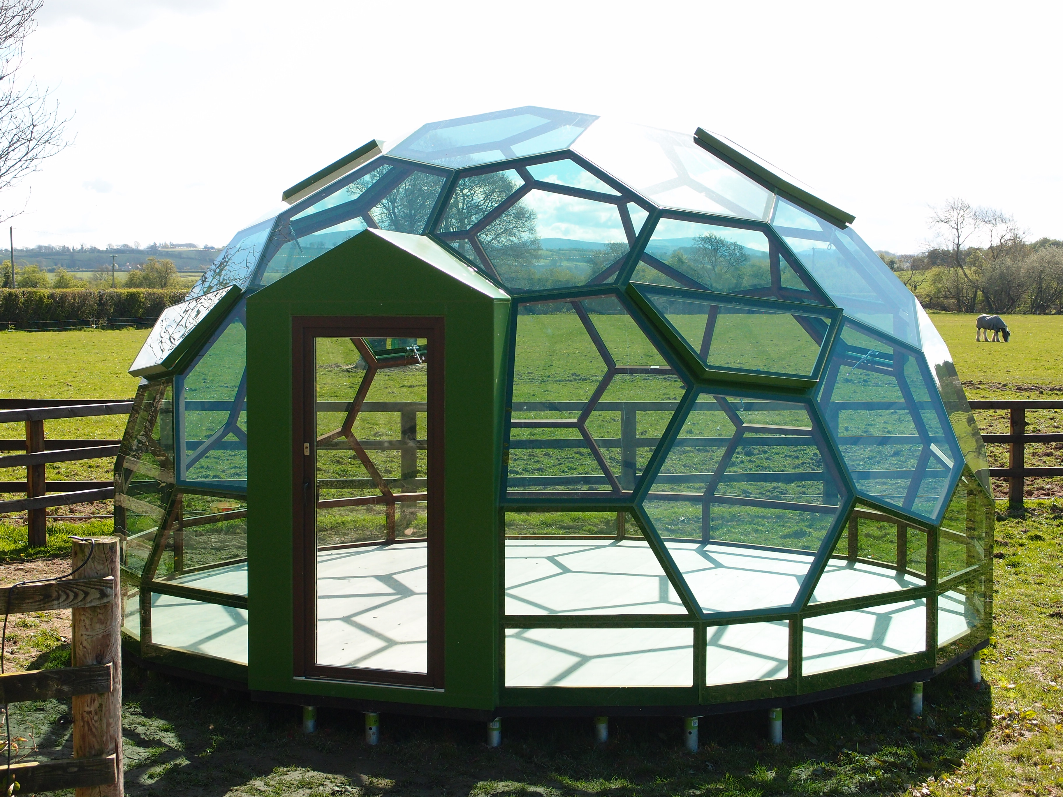We delivered a fully glazed 6m Cosmos Dome, finished with our green tinted Solar Comfort glass package.